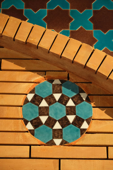 The design of this special door within the museum was prepared by Atolye Demirtas, inspired by the Seljuk tile tradition, while the tile applications were produced by our company. Red-bodied and turquoise-colored tiles were used around the frame, complemented by Seljuk star and cross forms in manganese purple and turquoise hues. Three 30 cm round Iznik tiles were also added to complete the composition.