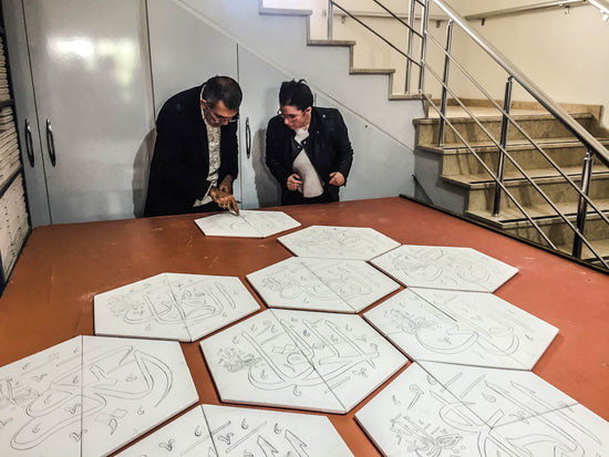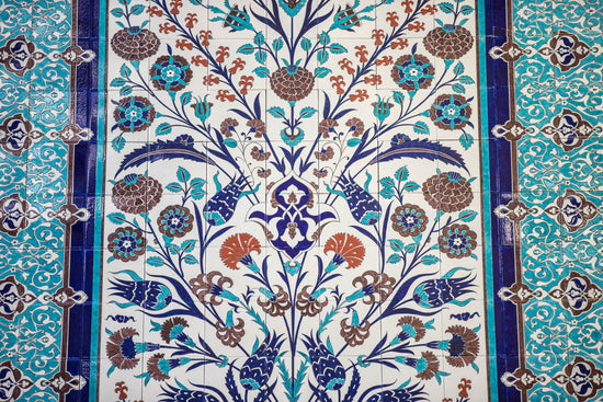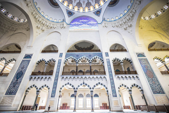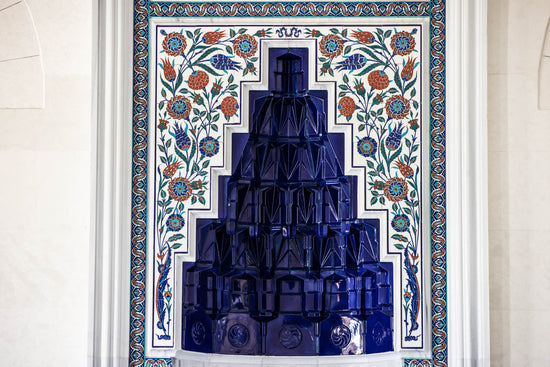 In the largest mosque of the Republic of Turkiye, Camlica Mosque, our company, in collaboration with Anikya, produced 500 square meters of patterned and 200 square meters of plain-colored Iznik tiles. Traditional floral motifs and elegant calligraphy were combined to harmonize with the mosque’s architectural grace and spiritual atmosphere. Through this project, classical Iznik motifs and Islamic calligraphy were brought together to give the space a distinctive aesthetic.