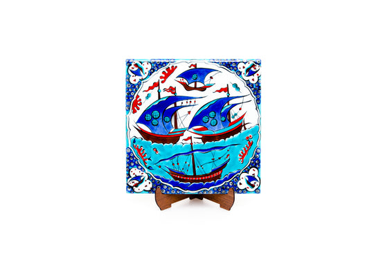 Iznik tiles are delivered in a velvet box along with a wooden or plexiglass stand, while Iznik ceramics are presented in a velvet box.
