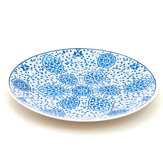 The Muradiye Mosque in Edirne was built in the name of II. Murat, the father of Fatih Sultan Mehmed. This mosque, believed to have been constructed in 1426, features hexagonal and blue & white İznik tiles, which are among the finest examples of Turkish tile art. The İznik Tile Large Flat Plate is a special design and collection item inspired by the rumi pattern found in one of these tiles. This design combines the historical texture with a modern interpretation.