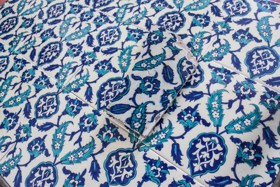In the 2020 restoration, Iznik Mavi Cini produced 850 Iznik tiles in various sizes (25x25 cm, 12x25 cm, and 9x25 cm) for the interior ornamentation, replicating the original craftsmanship.
