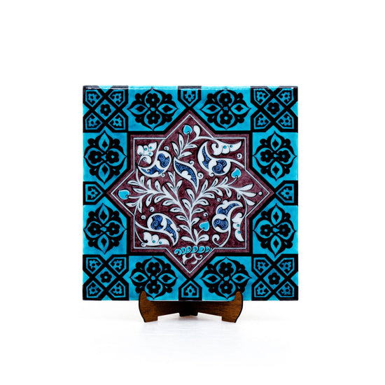 Iznik tiles are delivered in a velvet box along with a wooden or plexiglass stand, while Iznik ceramics are presented in a velvet box.
