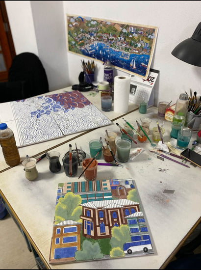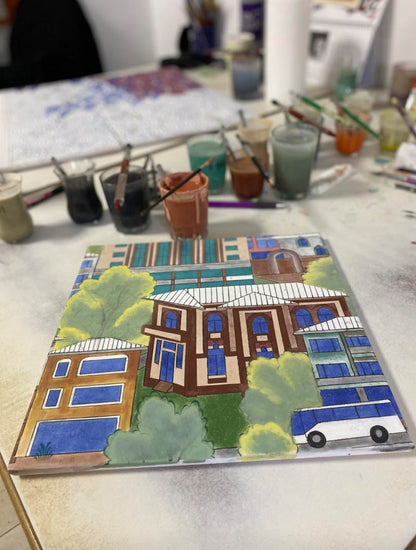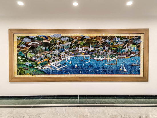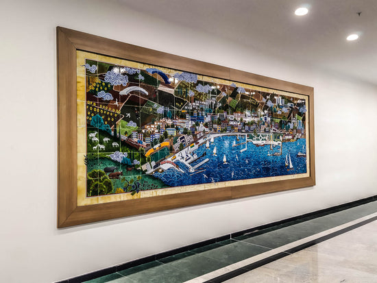 Designed by Nasuhi Hasan Colpan, this 1.5 x 6-meter miniature Iznik tile panel depicts the iconic structures of Tekirdag. Produced by our company, it adds artistic and cultural value to the hospital setting through the refined craftsmanship of Iznik tile art.