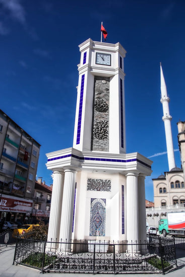 Akdağmadeni’nin en işlek noktalarından biri olan Terminal Girişi Meydanı’ndaki Saat Kulesi, firmamız tarafından üretilen özel İznik çinileriyle estetik bir görünüme kavuşmuştur. Topkapı Sarayı’ndaki Altın Yol pano deseninden ilham alınan tasarımlar, zeytin ağaçlı pano deseni ve kobalt bordürlü İznik çinileriyle birleşerek ilçenin simgesel yapısına kültürel ve sanatsal bir değer katmıştır.