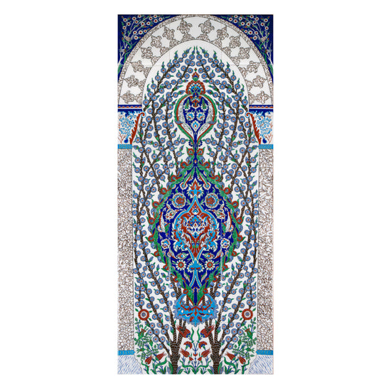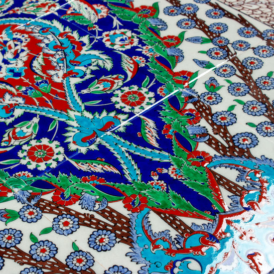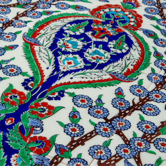 Bu İznik çinisi, Osmanlı Dönemi'nde üretilen çiniler gibi yüksek oranda kuvars içermekte olup tamamen el işçiliğiyle üretilmiştir. Parlak sır kullanılarak son katman uygulanmıştır.