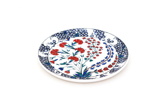 Ashmolean Müzesi koleksiyonunda yer alan bu İznik çini tabak, özgün karanfil motifleriyle dikkat çeker. Osmanlı dönemi çini sanatının nadide örneklerinden biri olan bu replikada, geleneksel desenler ve İznik çinisinin canlı renkleri özenle işlenmiştir. Her bir İznik çinisi, usta zanaatkârlar tarafından tamamen el işçiliğiyle üretilmiştir.