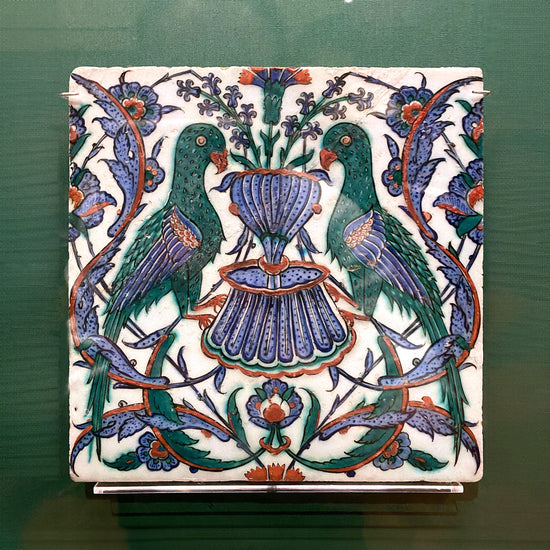 Çeşme Başında İki Kuş Desenli İznik Çini Karo