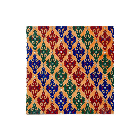 Elibelinde Kilim Desenli Tek Parça İznik Çini Karo (40x40cm)