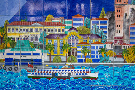 Tasarımı Nasuhi Hasan Çolpan tarafından hazırlanan ve firmamız tarafından üretilen bu özel minyatür çini pano, 2,5 x 7 metre ölçülerindedir. İzmir’in simgesi haline gelen önemli mekân ve yapıları konu alan tasarımıyla dikkat çeken pano, İznik çini sanatının zarif detaylarıyla modern bir yorum sunmaktadır. Bu özel eser, İzmir Halkapınar Metro İstasyonu’nda sergilenerek kentin kültürel ve sanatsal kimliğine katkı sağlamaktadır.