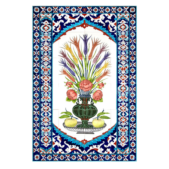Osmanlı çini sanatının ihtişamlı örneklerinden biri olan Hasbahçe İstanbul Lalesi İznik Çini Pano, İstanbul’un simgesi haline gelen lalelerin zarif motifleriyle bezenmiştir. Sultanların gözdesi olan lale, bu pano ile duvarlarınıza tarihi bir atmosfer katıyor. Desen tasarımı Serap Ereyli ve İznik Mavi Çini'ye aittir.