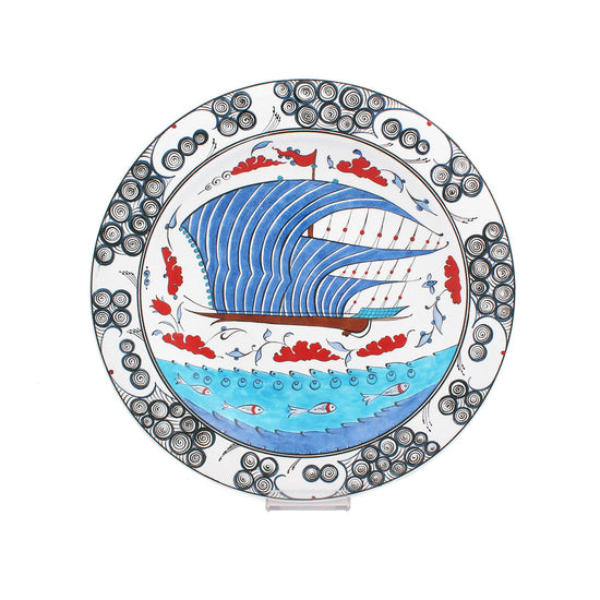 Osmaniye Kalyonu'nun zarif ve güçlü tasarımını taşıyan bu İznik çinisi tabak, Osmanlı denizcilik mirasını evlerinize getiriyor. Tabağın orijinali Adda Collection'da sergilenmektedir.
