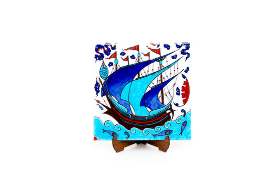 Osmanlı denizcilik tarihinin görkemli savaş gemilerinden biri olan Sultan Kalyonu, İznik çini sanatıyla yeniden yorumlandı. Geleneksel motiflerle süslenen bu çini karo, Osmanlı deniz gücünü sanatsal bir dokunuşla mekanlarınıza taşıyor.