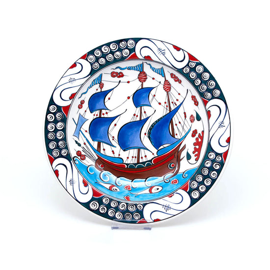 Osmanlı’nın denizlerdeki güçlü temsilcilerinden Yavuz Kalyonu, İznik çinisi tabakta yeniden hayat buldu. Tarihi denizcilik mirasını yansıtan bu tabak, koleksiyonluk bir sanat eseri niteliği taşıyor. Tabağın orijinali İngiltere'deki Sotheby's koleksiyonunda yer almış ve sonrasında müzayedede satılmıştır.