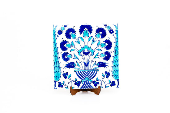 Yeni Cami Çiçek Vazosu Deseni İznik Çini Karo Replikası